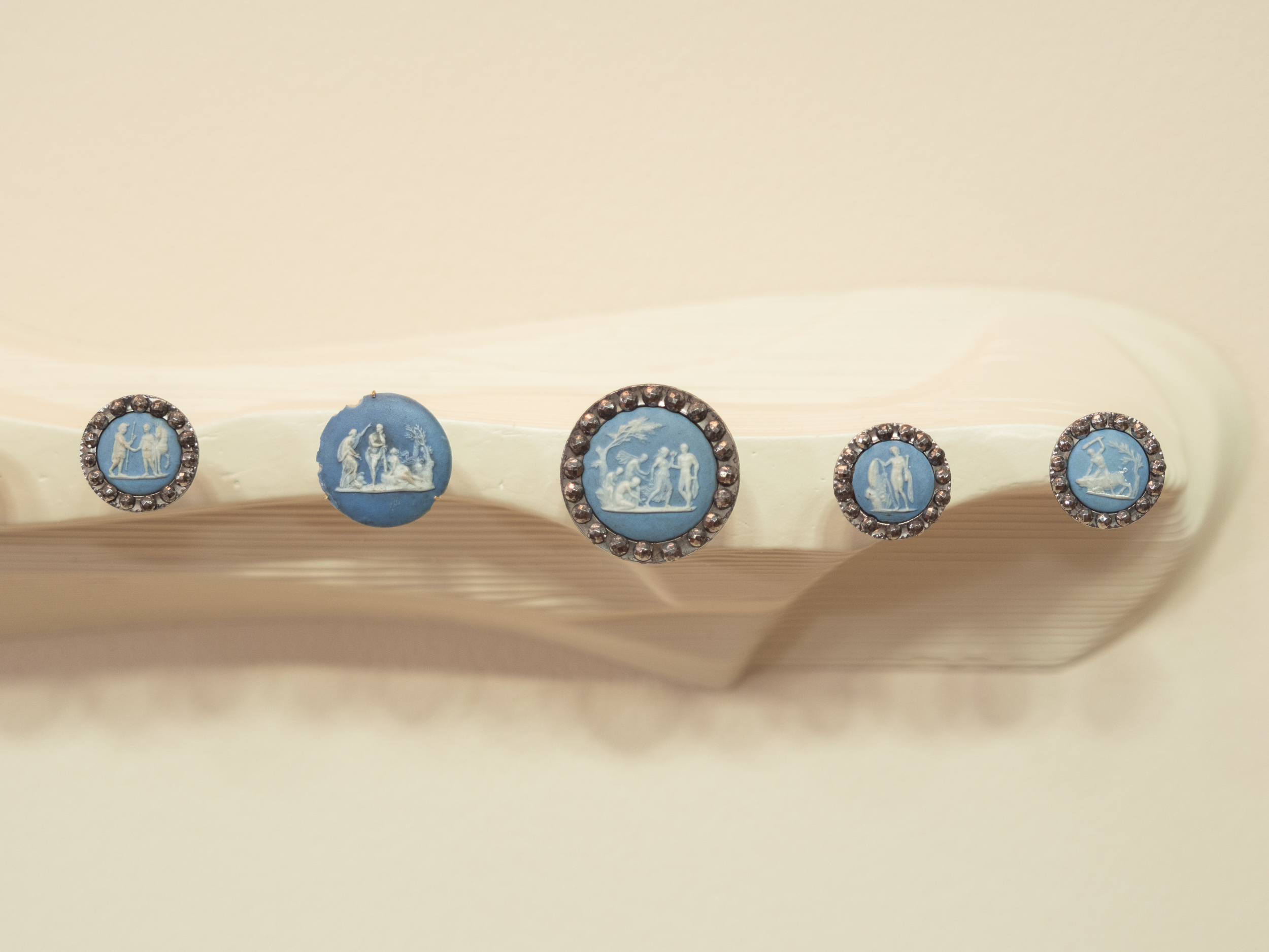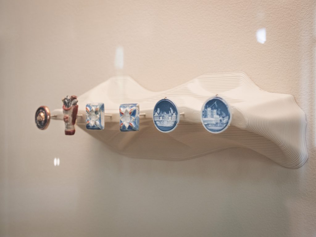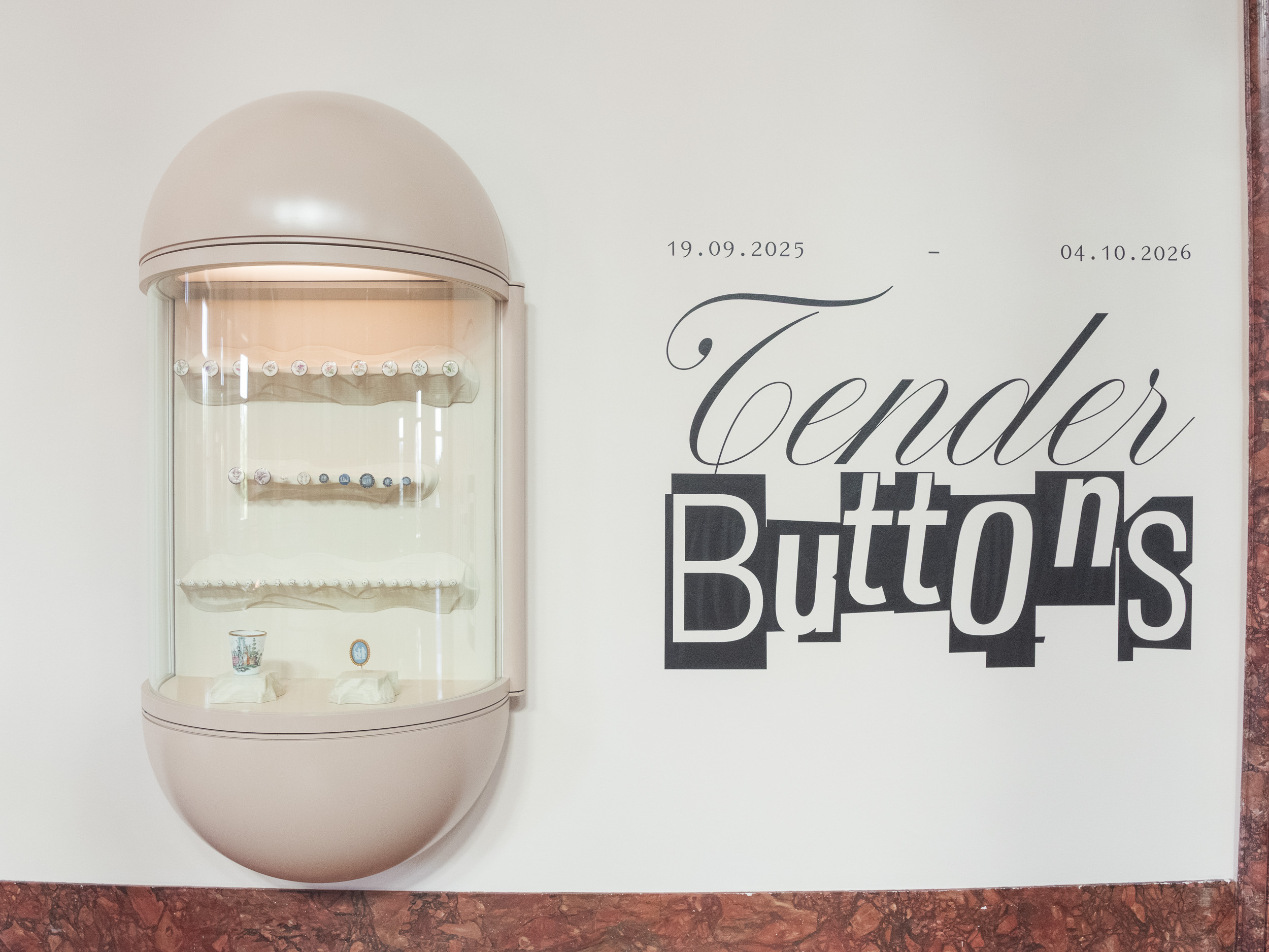 Buttons emerge here as vehicles of formal experimentation, but also as instruments of survival, identity and collaboration. The often-overlooked social histories of these everyday objects are highlighted through a scenography by Lucie de Martin, inspired by the architecture of 19th-century shopping arcades – a key period for the industrialisation of porcelain and glass buttons.