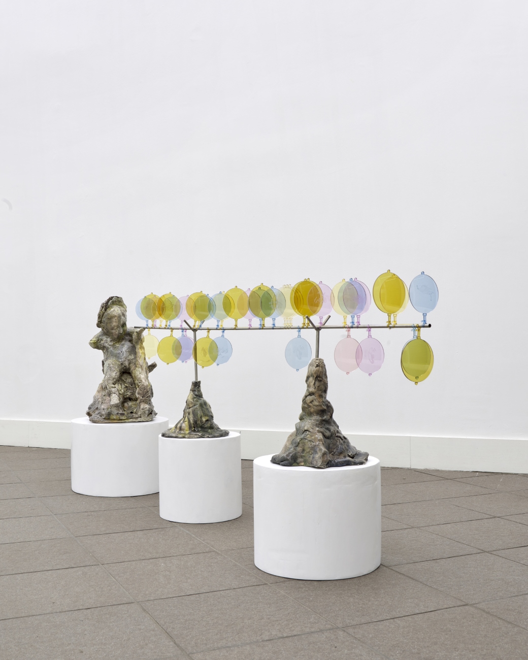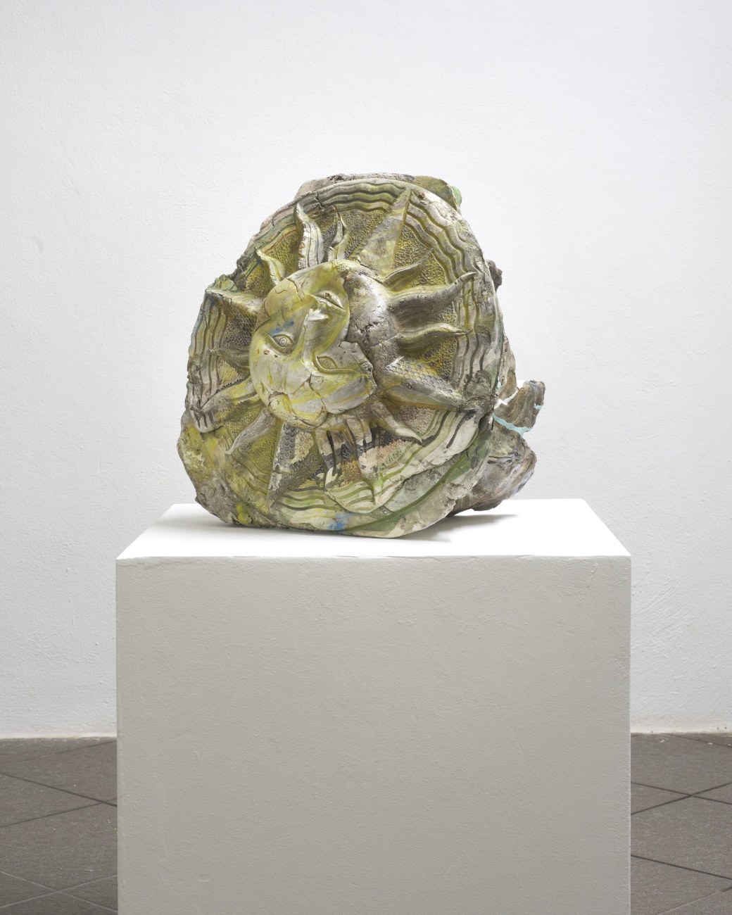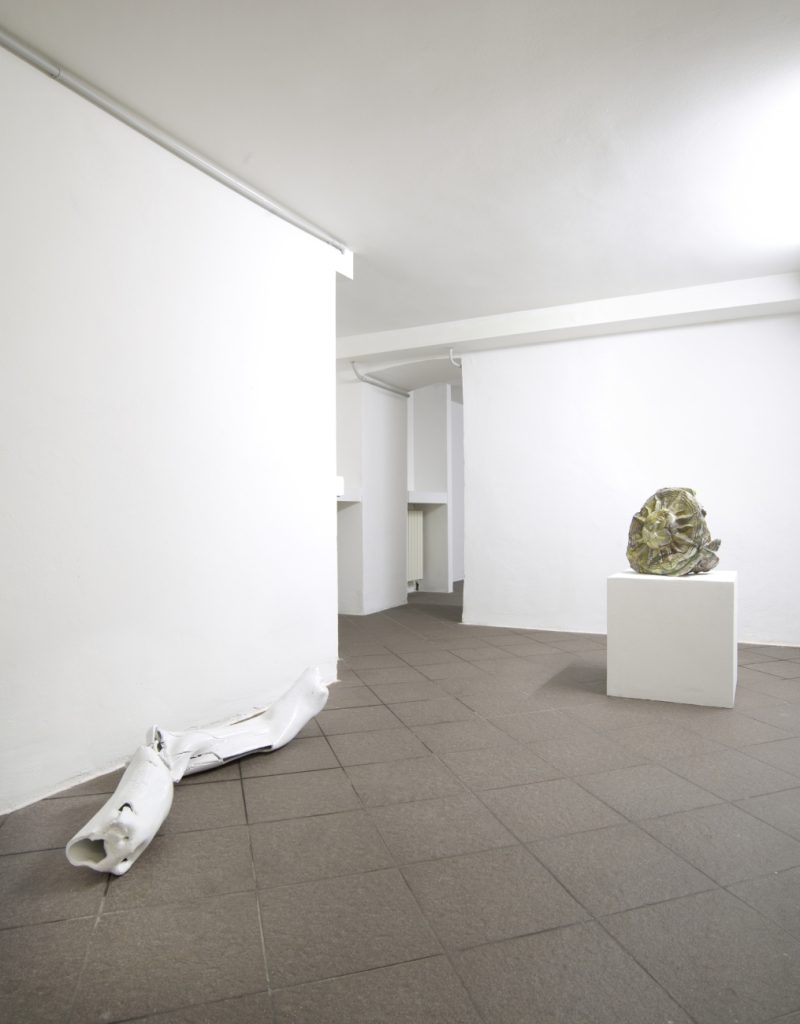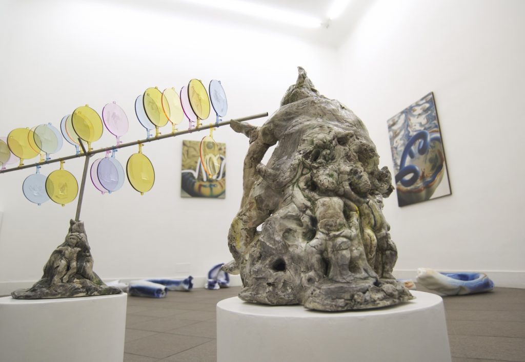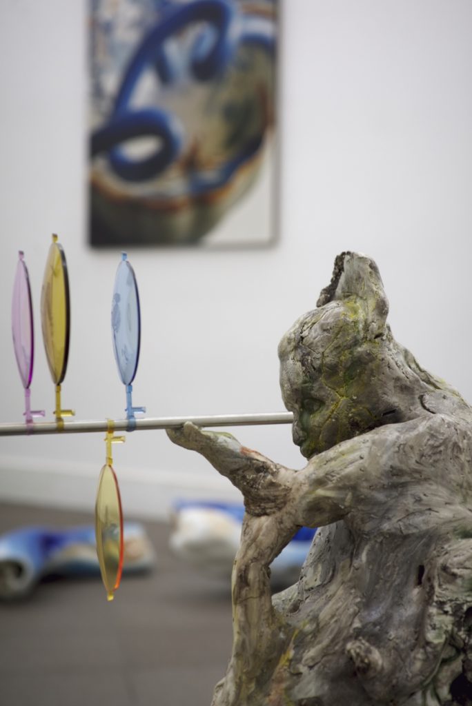 According to an antithetical demiurgic movement, the exhibition concludes with a descent, both physical and evocative, into a proto-vital condition. Fluid, visceral presences recall amniotic liquids in motion: viscous volumes surfacing and emerging from the earth itself. Ceramic castings and acetate forms share a metamorphic dimension, alluding to primordial organisms engaged in an evolutionary trajectory that reaches toward the forms presented on the upper floor of the gallery.