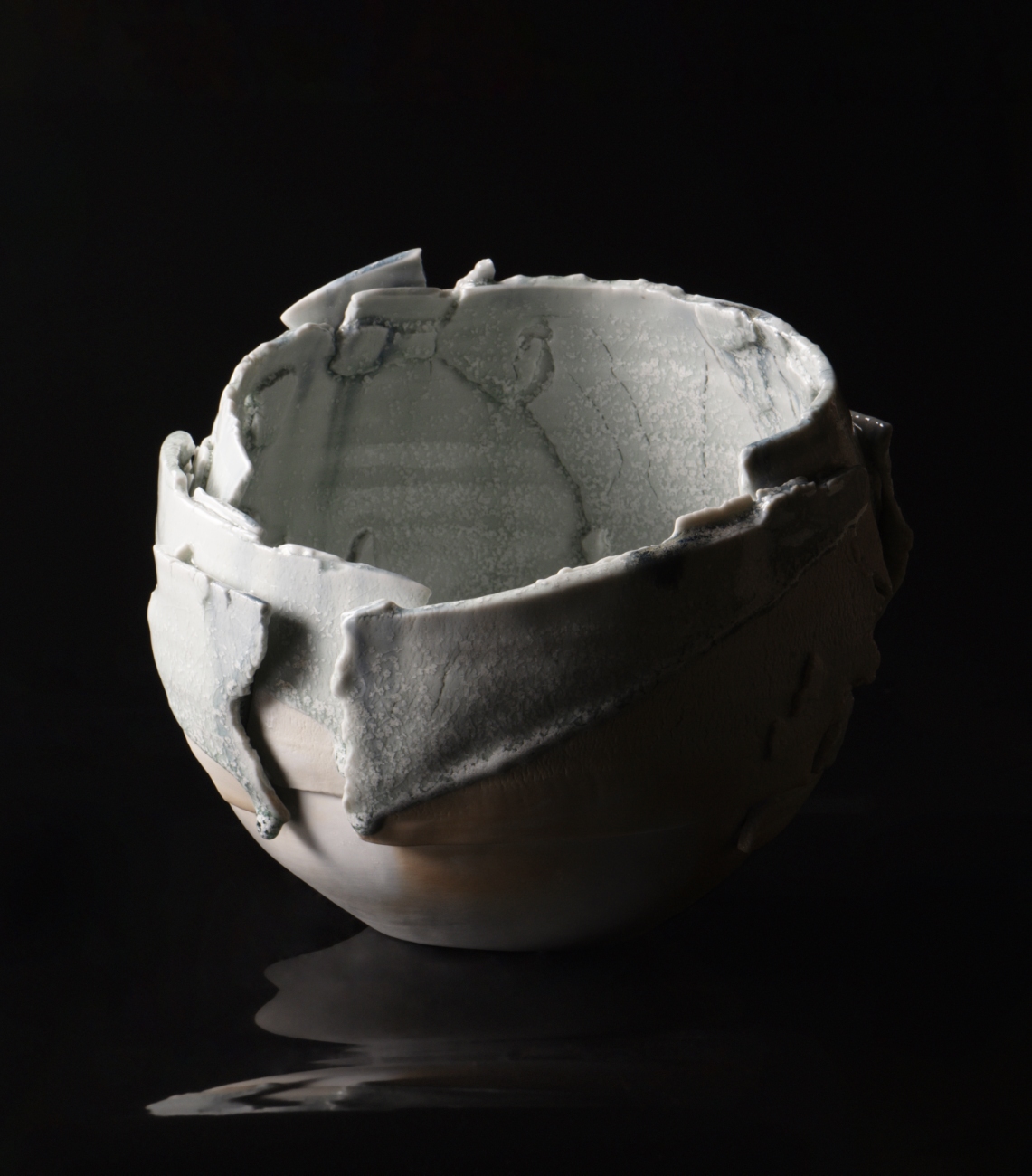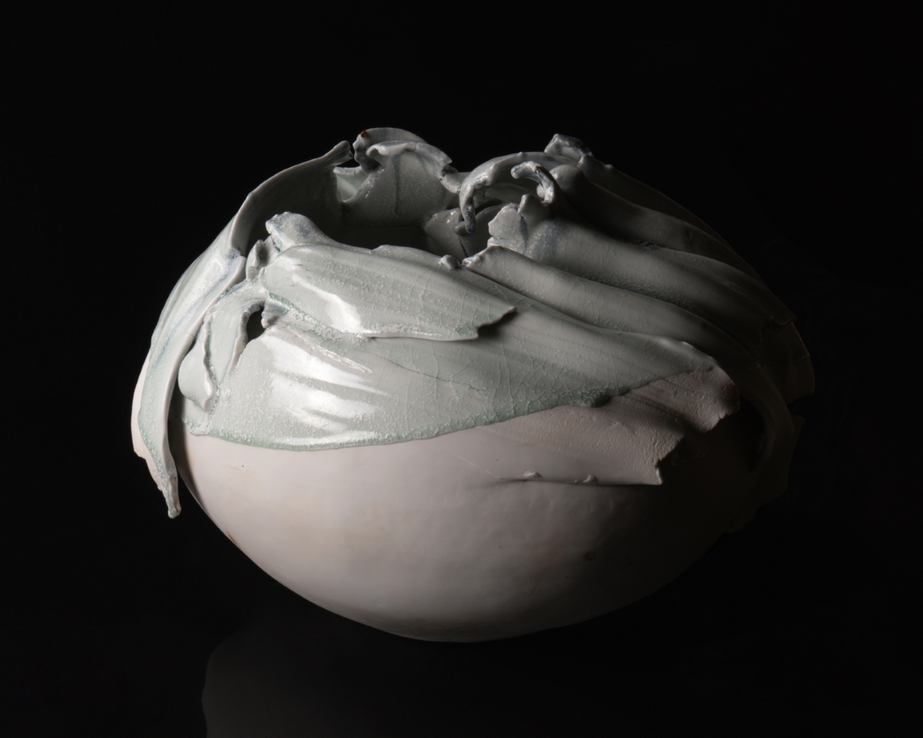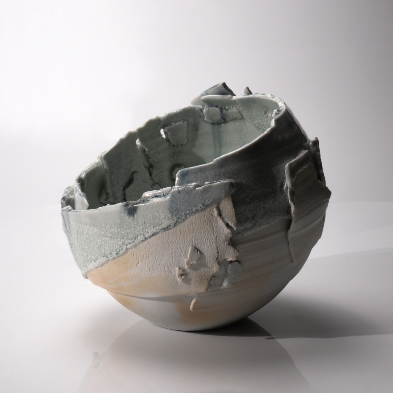 Following this milestone, among several other accomplishments, Kato was also awarded the Grand Prize, at the prestigious 44th Mino Ceramics Exhibition, Japan in 2019. In 2021, her work received the Grand Prize at the 22nd Japan Ceramic Art Exhibition, where the jury noted how the surface of her ceramics, which resembled crackled icy frost in color and form, still radiated a presence of warmth from within. The winning vessel from 2021 was inviting, beckoning viewers to look inside through various systems of undulating curves that guided the eye towards the centre of the piece. This abstract duality, between coldness and vitality; structural and organic, are expressed throughout her oeuvre.