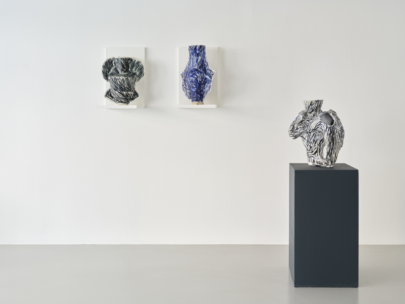 Silhouette Extended is the group that gives the exhibition at Taste Contemporary its title. In these works, the roughly symmetrical form pushes outward into space. We see bulges, elongations, extensions. This allows insights that were previously possible, but now in a new way. Cropped or fractured, expansive hollow vessel parts sometimes appear as if they have been encrusted for decades, fused with the body of the vessel. The glazed interior views carry an air of secrecy. In the Extended works, volume and three-dimensionality once again claim space.