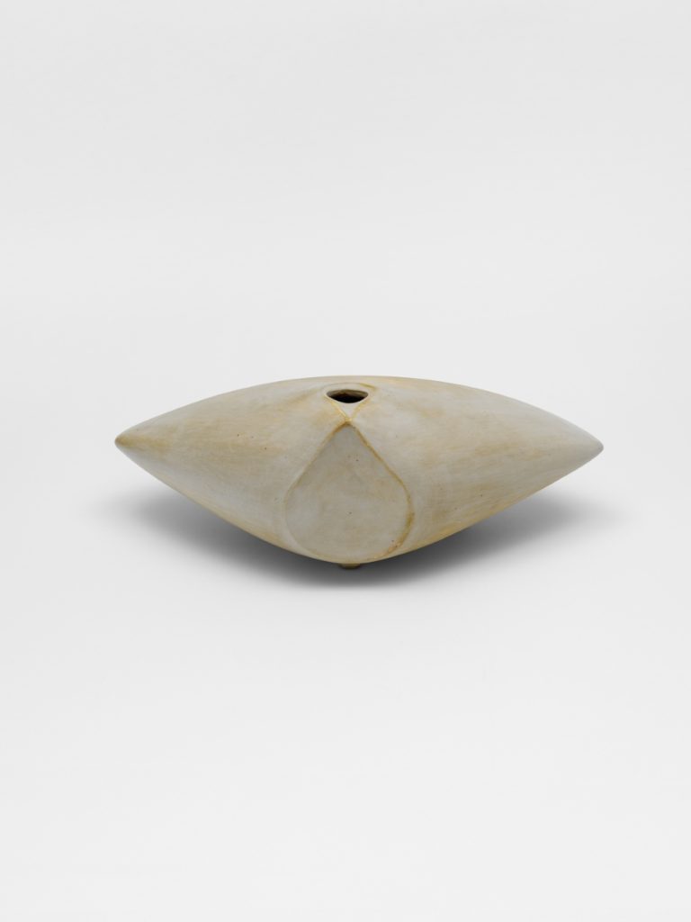 - Wayne Ngan, Clam Form Vessel, c. 2010s, Stoneware, 5 1/8 x 13 3/4 x 8 1/4 in, 13 x 35 x 21 cm. Courtesy of Wayne Ngan, Studio and James Cohan, New York. Photo by Dan Bradica.
