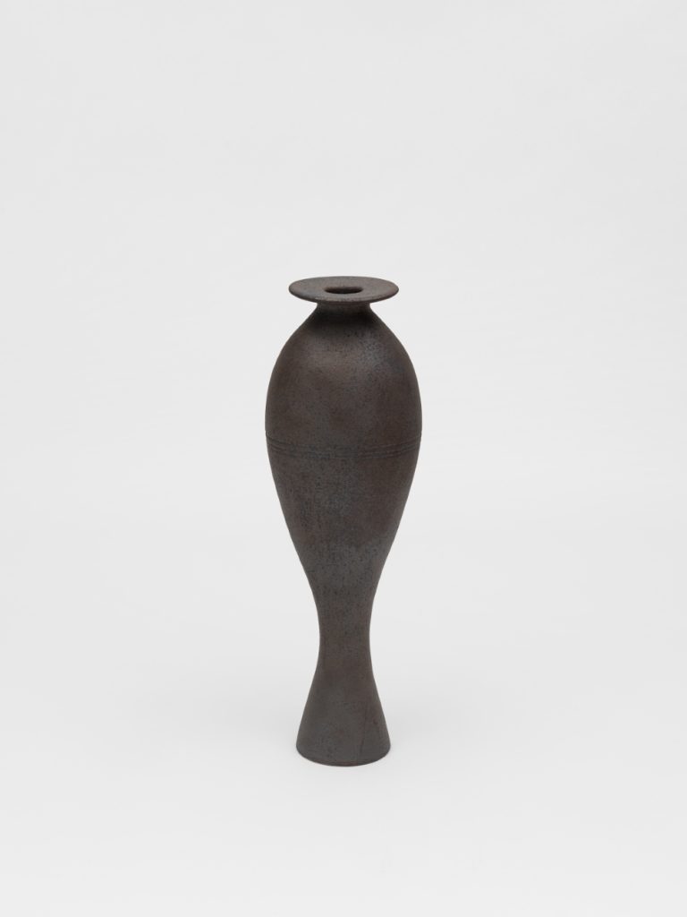 - Wayne Ngan, Yukon Black Vase with Lugs, c. 1990s, Stoneware, 12 1/4 x 5 7/8 x 5 7/8 in, 31 x 15 x 15 cm. Courtesy of Wayne Ngan, Studio and James Cohan, New York. Photo by Dan Bradica.