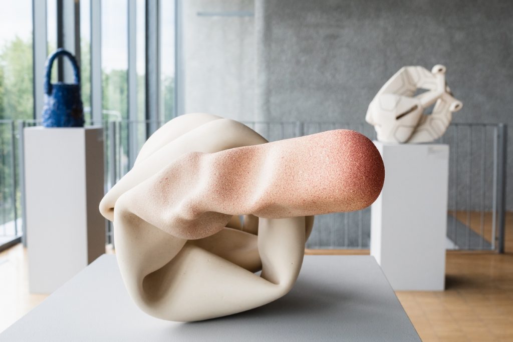 In terms of material treatment, Frozen Whispers by Nadine Bell, stands out for its use of fiberglass. Despite the closed spherical form, the artist managed to convey fragility and delicacy. The sculpture Uranos by the Greek duo Despina Chroni and Giorgos Zitis is the only one that seems to have a defined, utilitarian form, yet the description aptly directs us to the mythological Greek god of the sky. The harmonious sculptural form in an intense shade of blue refers to the harmony of the universe. Similarly, monochromatic is Radical Yellow by Eglė Einikytė-Narkevičienė, whose dynamic shape and intense color invite reflection on the significance of the sun and light. The work received a Special Partner Award in the form of a residency at the Creative Work House of the Faculty of Ceramics and Glass of the Eugeniusz Geppert Academy of Fine Arts in Wrocław.