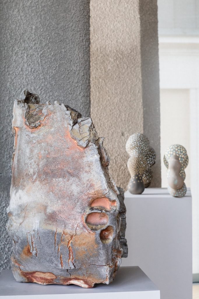 Flowing compositions created by exploiting the properties of porcelain firing sheets are achieved by Simcha Even-Chen in the work Integrated Inside-Outside. Another notable example is the sculpture Canyon / The Fired Earth Landscape 3 by Michał Puszczyński (Poland), which was awarded a Special Partner Prize in the form of an artistic residency at the Latvian Center for Contemporary Ceramics. The work reflects on the destructive impact of humans on the environment and evokes a landscape of decay. A different approach to the image of destruction is represented in Reconstruction by Alicja Kupiec (Poland). The sharp, dark, and raw composition is meant to evoke an impression of destruction. Composed of architectural fragments and various remnants of objects, it may evoke associations of war and its consequences, as well as with rebirth and building upon ruins.