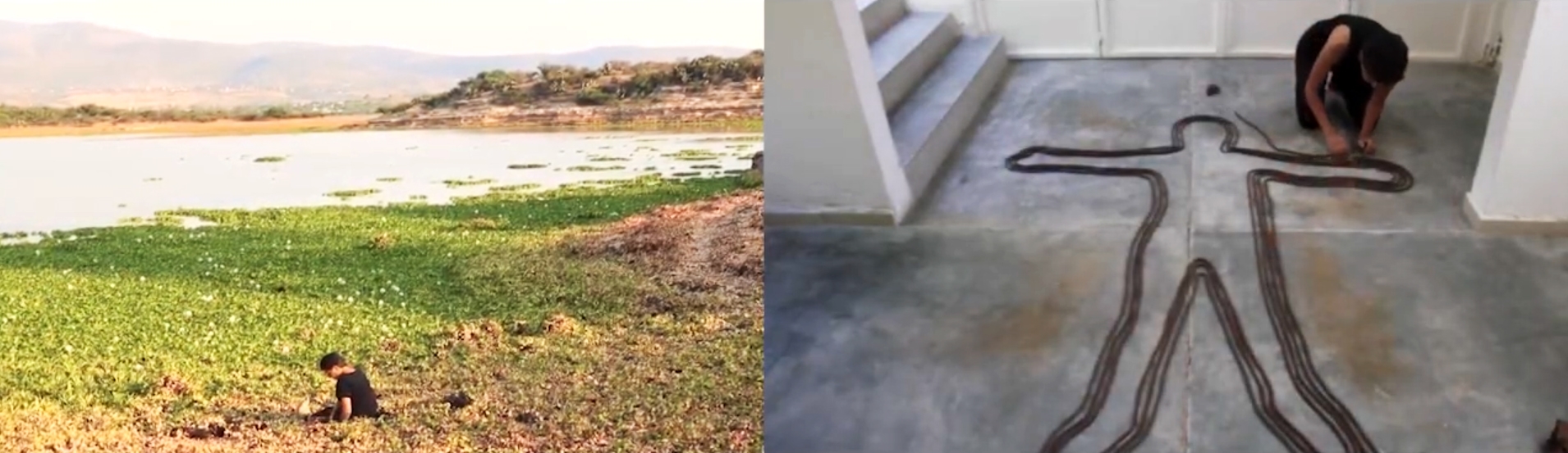 One of her latest productions from 2024, a performance recorded in an audiovisual work, is part of a project called El Cuerpo como Territorio (The Body as Territory), originally conceived as a two-channel projection with two videos (Tierra Húmeda and Como es Afuera es Adentro) that are complementary. For its presentation, the artist decided to edit them to project it as a single split-screen video, evidencing the dialogue and connection between the two.