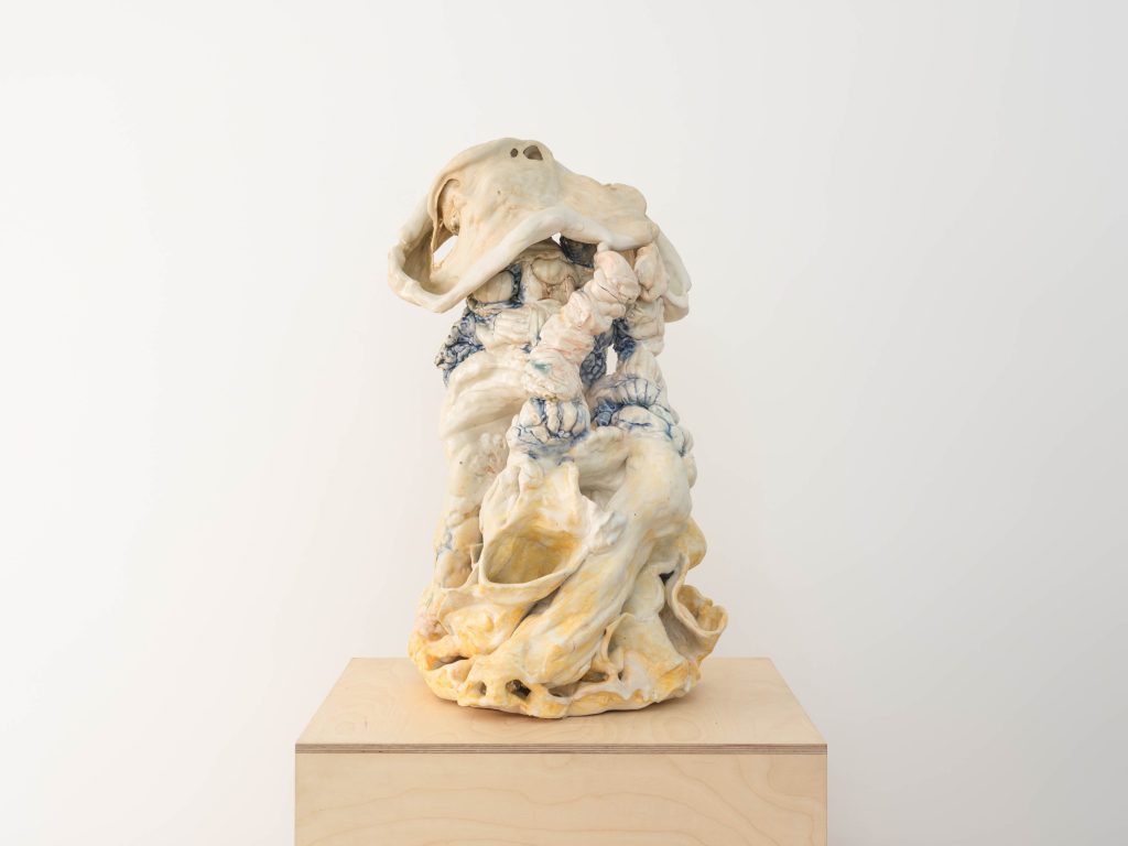 - Irene Nordli, Sorrow of the Night, 2022, Glazed porcelain, 17.75″ H x 19.25″ W x 14.5″ D