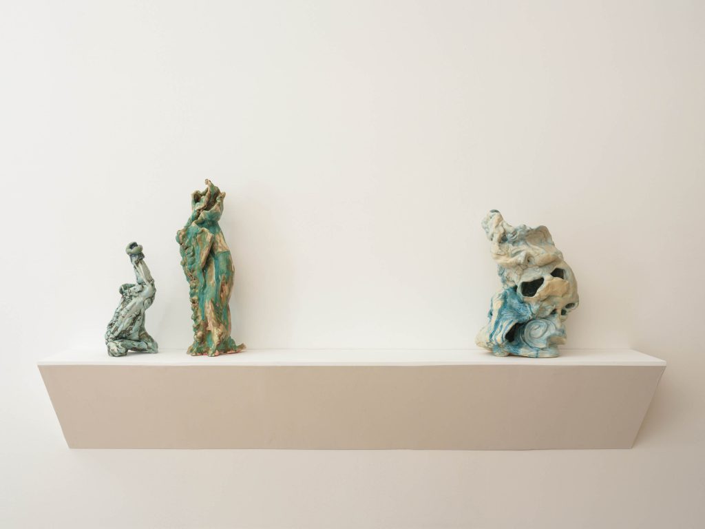 - Irene Nordli, Porcelain Fever, 2025, Glazed porcelain, 29.25″ H x 17″ W x 16.5″ D