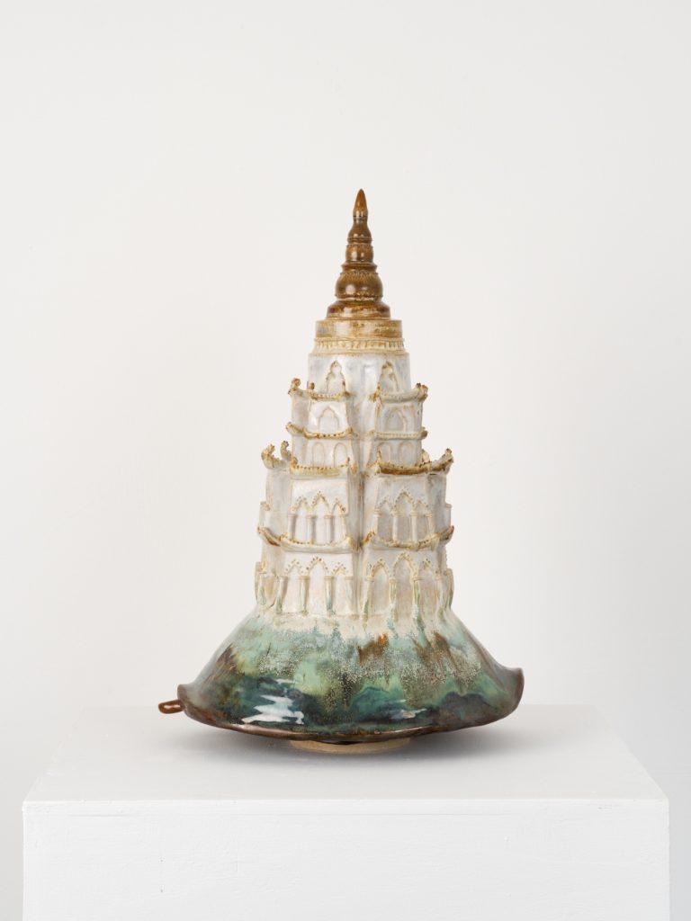The artist examines Chinese culture through a distinctly Malaysian lens, animating her sculptural pieces with hybrid animal figures drawn from the iconography of Penang’s temples, alongside motifs inspired by everyday objects such as roof tiles, lightbulbs and dressing room mirrors. Her large-scale sculptures draw structural support from found furnishings in rattan and bamboo: materials traded between Malaysia and the UK during the colonial era, which remain commonplace in households around the world.