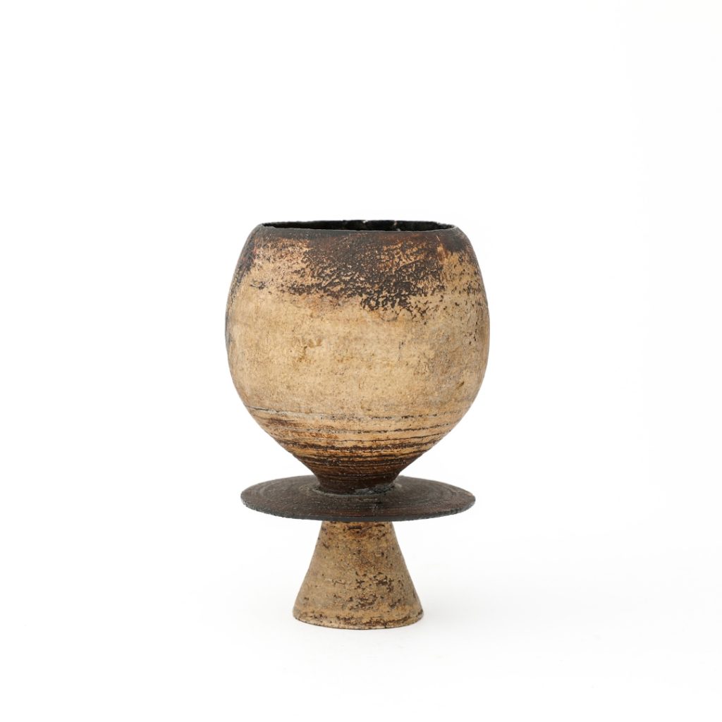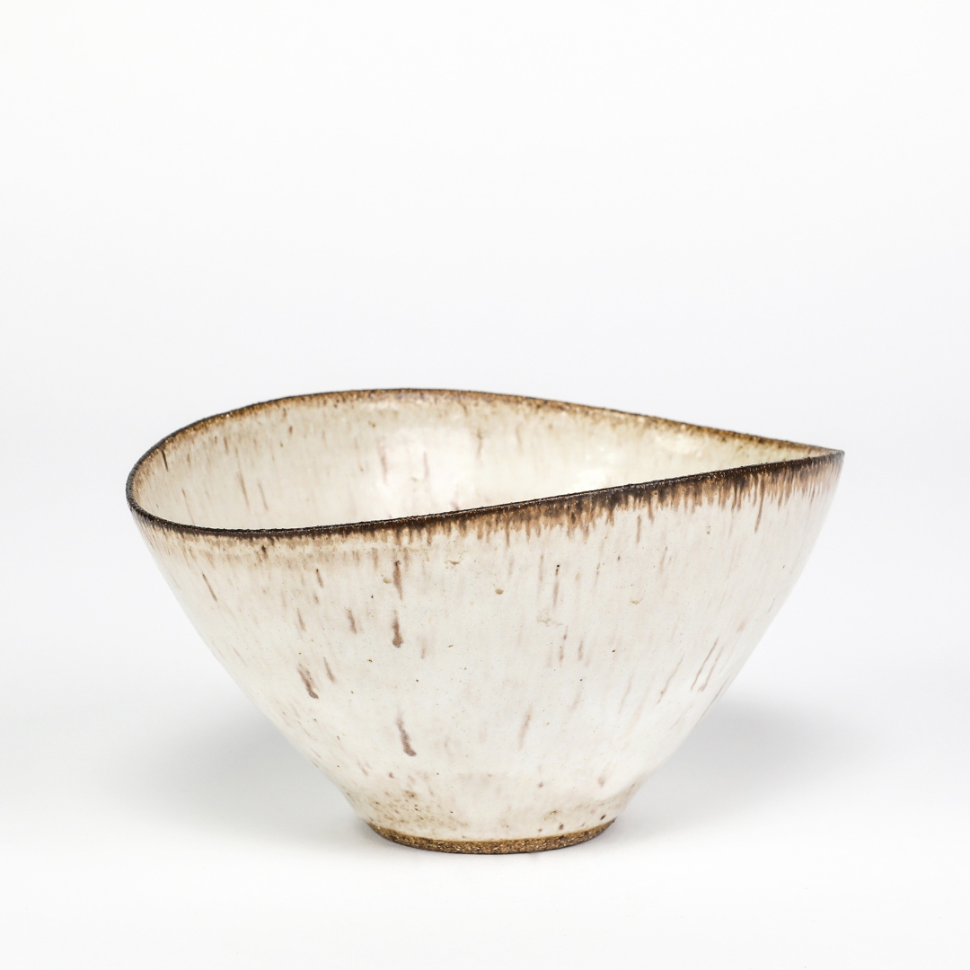 While the partnership between Leach and Pleydell-Bouverie is well celebrated – the latter potter being taken in under the wing of Leach after a series of evening classes – perhaps an even more significant relationship is that of the most famous émigré potters of the 20th century: Hans Coper (1920-1981) and Lucie Rie (1902-1995). Coper joined Rie’s studio in 1946 as an assistant, having never before worked in clay. The domestic simplicity of Rie’s output contrasts with Coper’s sculptural, abstract forms, and Woolley & Wallis is proud to present a number of fine pieces by both potters. Of particular note is a rare vessel – cup on foot with central disc, circa 1965 – which is provenanced to the estate of Jane Coper (1932-2002), Hans’ lifelong sweetheart and a talented artist in her own right.