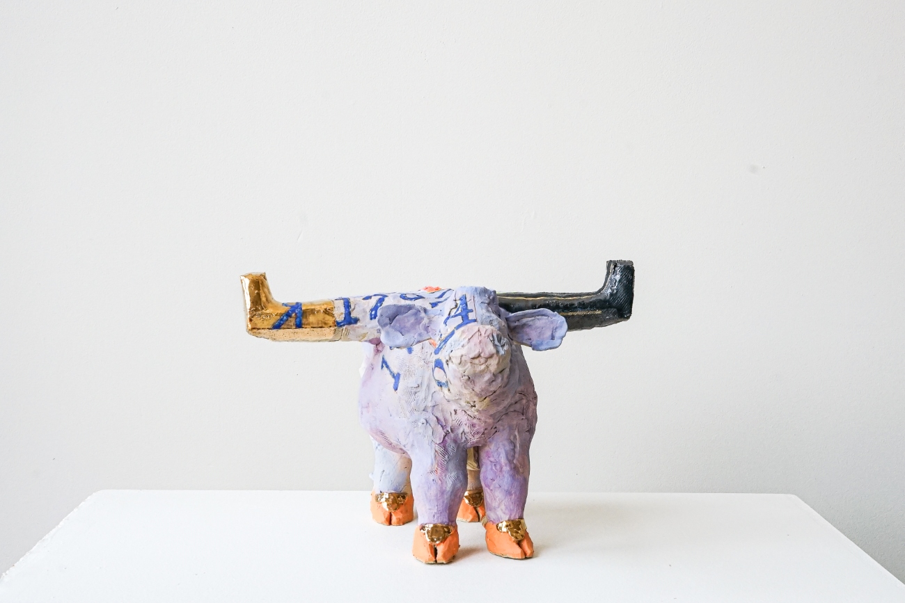 - Flying Cow, Ceramic and mixed media, 20x 14x 14in. 2024. Photo by Austin Coudriet.