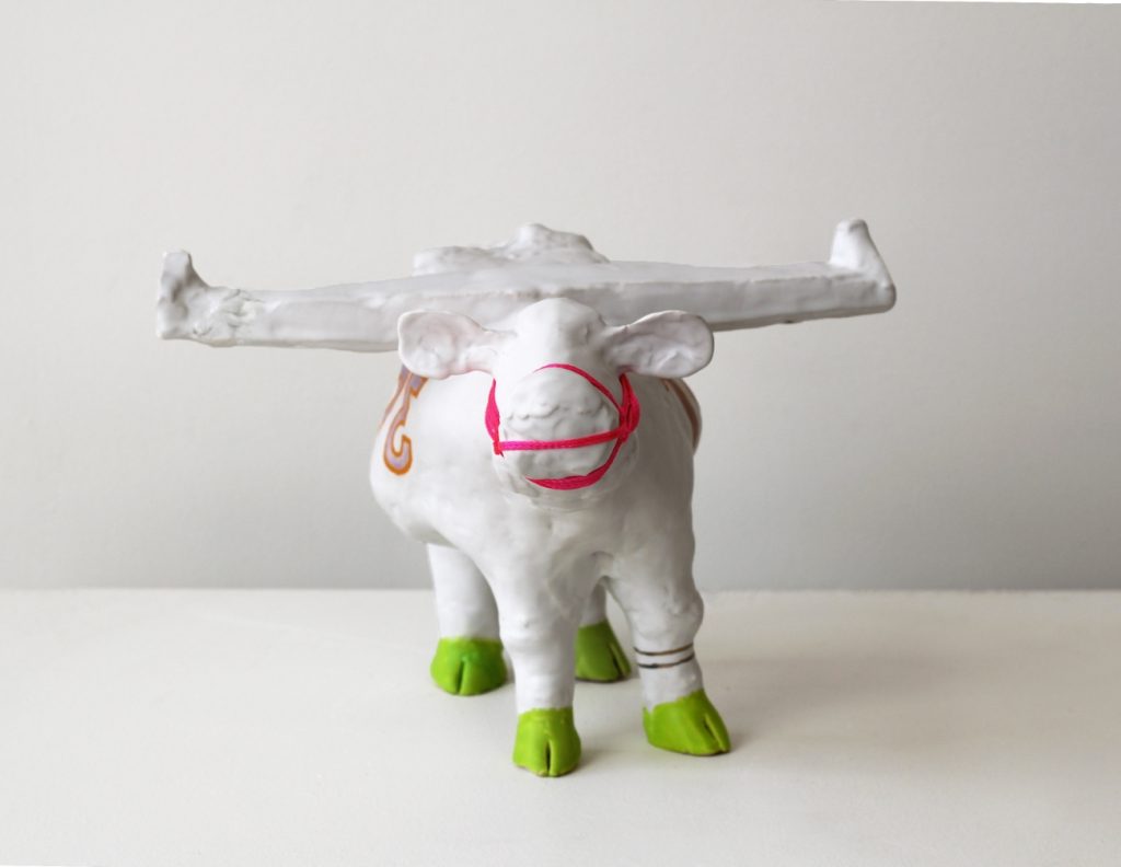 - Flying Cow-White, Ceramic and mixed media, 15x11x15in. 2025. Photo by Artist.