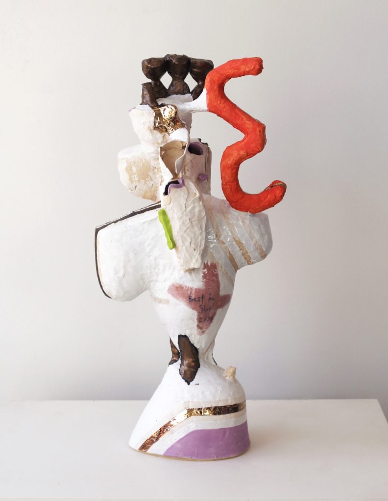 - Trophy Vase, Ceramic and mixed media. 17x18x35in. 2025 Photo by Artist.