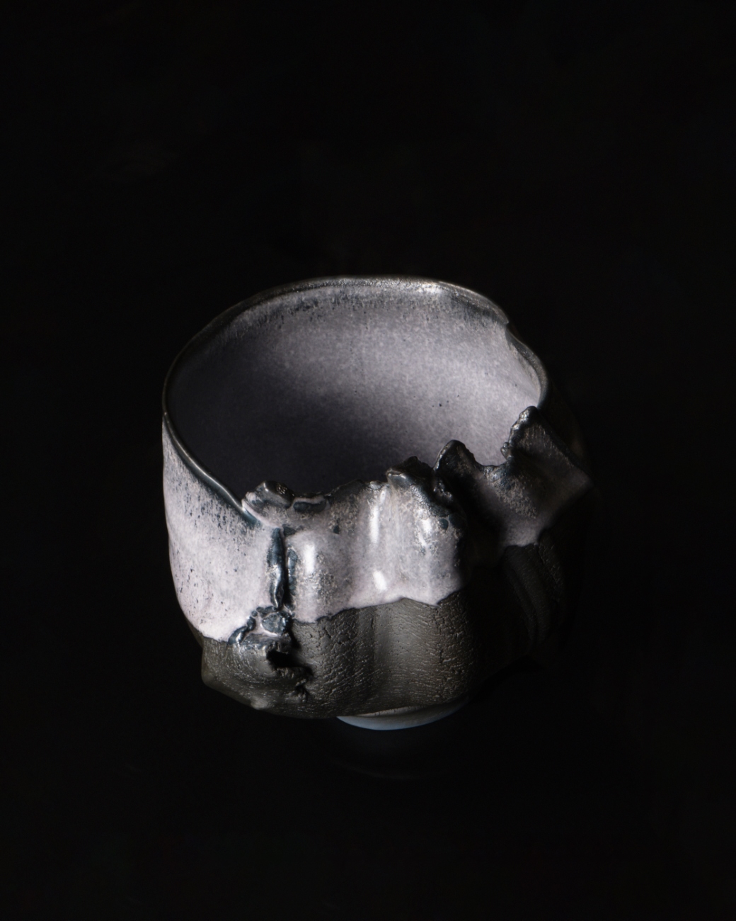 “This tea bowl was formed by draping a slab of clay over a mountain-shaped plaster mold. Where the slabs overlap on the body, they are slightly misaligned and crimped, creating a distinctive nuance unique to the artist. These subtle distortions lay bare the internal structure of the vessel, posing the question: What is a vessel? In this way, the artist imbues the work with a deeply personal reflection. It becomes, in a sense, a space through which the self is released.”
