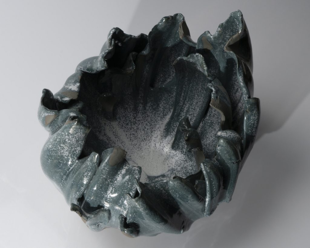 Following this milestone, among several other accomplishments, Kato was also awarded the Grand Prize, at the prestigious 44th Mino Ceramics Exhibition, Japan in 2019. In 2021, her work received the Grand Prize at the 22nd Japan Ceramic Art Exhibition, where the jury noted how the surface of her ceramics, which resembled crackled icy frost in color and form, still radiated a presence of warmth from within. The winning vessel from 2021 was inviting, beckoning viewers to look inside through various systems of undulating curves that guided the eye towards the centre of the piece. This abstract duality, between coldness and vitality; structural and organic, are expressed throughout her oeuvre.