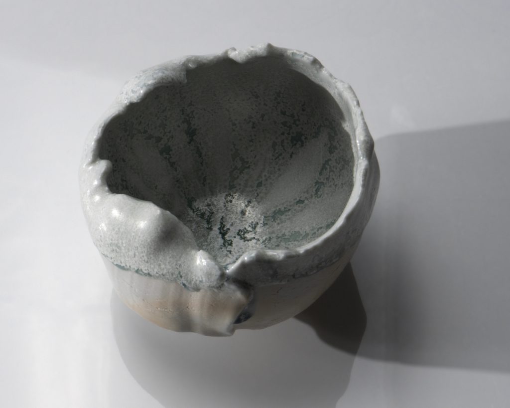 - Tea bowl “Himuro” 2025, Seto porcelain with Frost Glaze, (h) 11.5 × (w) 13.5 cm. Photography by Yoriko Kuzumi