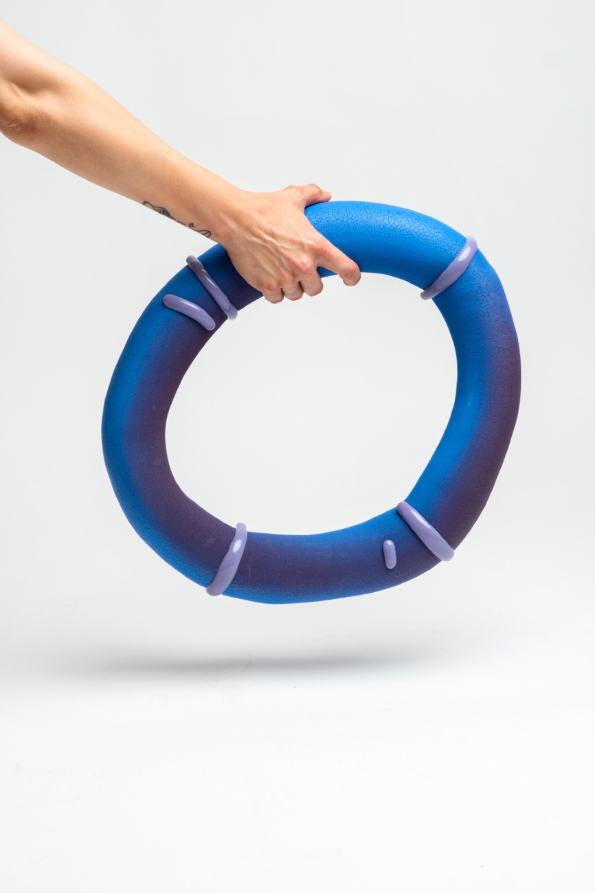 The project consists of a set of colorful body sculptures that call for performative action: to be worn and engaged through semi-restrained gestures, evoking a state of flux, friction, and transformation. Each position on the body generates new movement possibilities, inviting a continuous negotiation between form and motion.