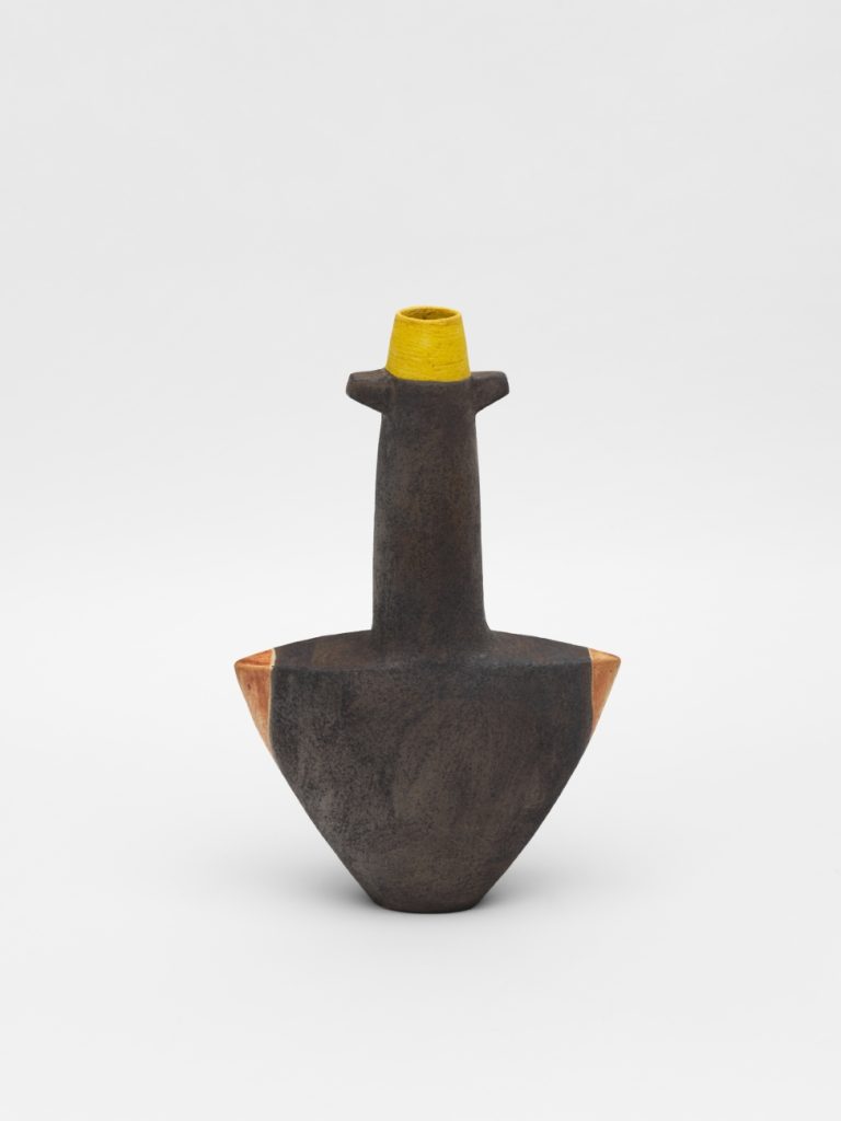 - Wayne Ngan, Sculptural Vase with Lugs and Yellow Rim, 2010, Stoneware, 15 3/8 x 9 7/8 x 4 in, 39 x 25 x 10 cm. Courtesy of Wayne Ngan, Studio and James Cohan, New York. Photo by Dan Bradica.