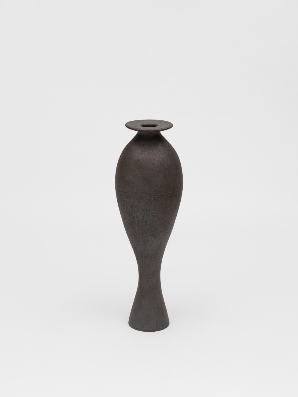 - Wayne Ngan, Yukon Black Vase with Lugs, c. 1990s, Stoneware, 12 1/4 x 5 7/8 x 5 7/8 in, 31 x 15 x 15 cm. Courtesy of Wayne Ngan, Studio and James Cohan, New York. Photo by Dan Bradica.