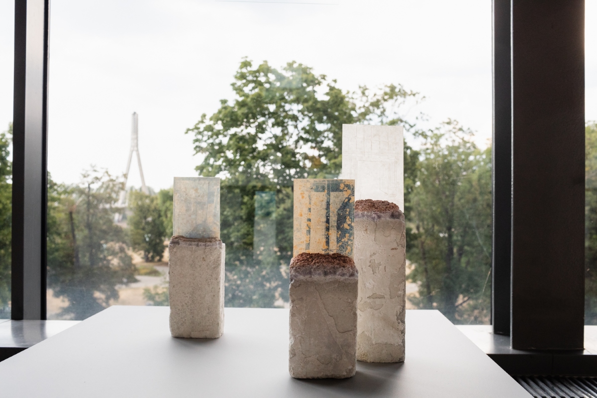 Flowing compositions created by exploiting the properties of porcelain firing sheets are achieved by Simcha Even-Chen in the work Integrated Inside-Outside. Another notable example is the sculpture Canyon / The Fired Earth Landscape 3 by Michał Puszczyński (Poland), which was awarded a Special Partner Prize in the form of an artistic residency at the Latvian Center for Contemporary Ceramics. The work reflects on the destructive impact of humans on the environment and evokes a landscape of decay. A different approach to the image of destruction is represented in Reconstruction by Alicja Kupiec (Poland). The sharp, dark, and raw composition is meant to evoke an impression of destruction. Composed of architectural fragments and various remnants of objects, it may evoke associations of war and its consequences, as well as with rebirth and building upon ruins.