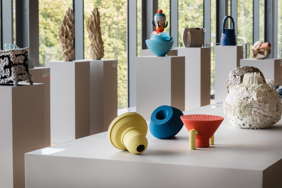 Hanna Miadzvedzeva created her own technique of producing forms from slip, with her sculpture Storm reminiscent of a thundercloud billowing low overhead. In terms of contextual engagement, a sculpture that particularly stood out, was the creation From the series War by Czech artist Robert Buček, who paints representations of war in the style of children’s drawings on prefabricated ceramic segments. The destructive impact of war is further emphasized through the use of the raku method. Childhood is also referenced, though differently, in the works Mumu model Voodoo by Mariusz Dydo (Poland) and JOY by Marta Olejniczak (Poland).
