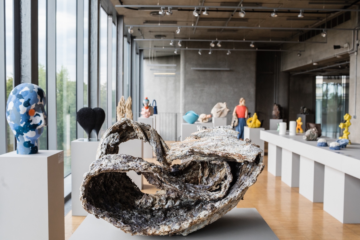 In terms of material treatment, Frozen Whispers by Nadine Bell, stands out for its use of fiberglass. Despite the closed spherical form, the artist managed to convey fragility and delicacy. The sculpture Uranos by the Greek duo Despina Chroni and Giorgos Zitis is the only one that seems to have a defined, utilitarian form, yet the description aptly directs us to the mythological Greek god of the sky. The harmonious sculptural form in an intense shade of blue refers to the harmony of the universe. Similarly, monochromatic is Radical Yellow by Eglė Einikytė-Narkevičienė, whose dynamic shape and intense color invite reflection on the significance of the sun and light. The work received a Special Partner Award in the form of a residency at the Creative Work House of the Faculty of Ceramics and Glass of the Eugeniusz Geppert Academy of Fine Arts in Wrocław.