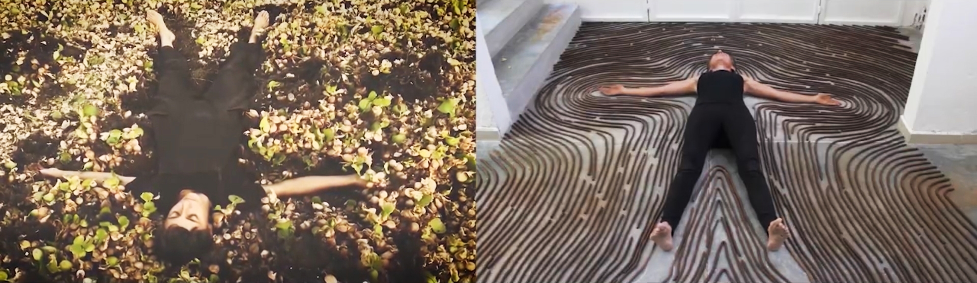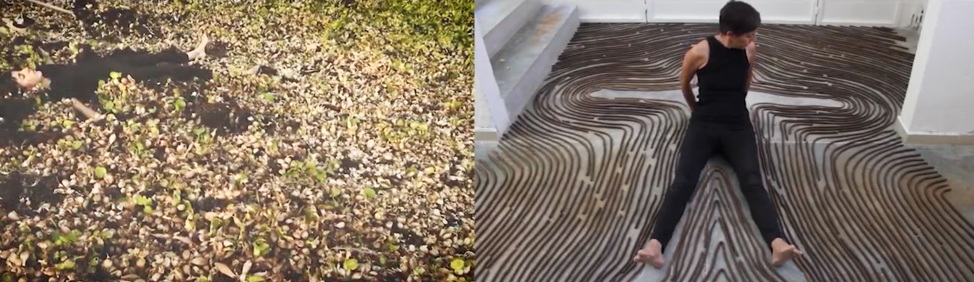 One of her latest productions from 2024, a performance recorded in an audiovisual work, is part of a project called El Cuerpo como Territorio (The Body as Territory), originally conceived as a two-channel projection with two videos (Tierra Húmeda and Como es Afuera es Adentro) that are complementary. For its presentation, the artist decided to edit them to project it as a single split-screen video, evidencing the dialogue and connection between the two.
