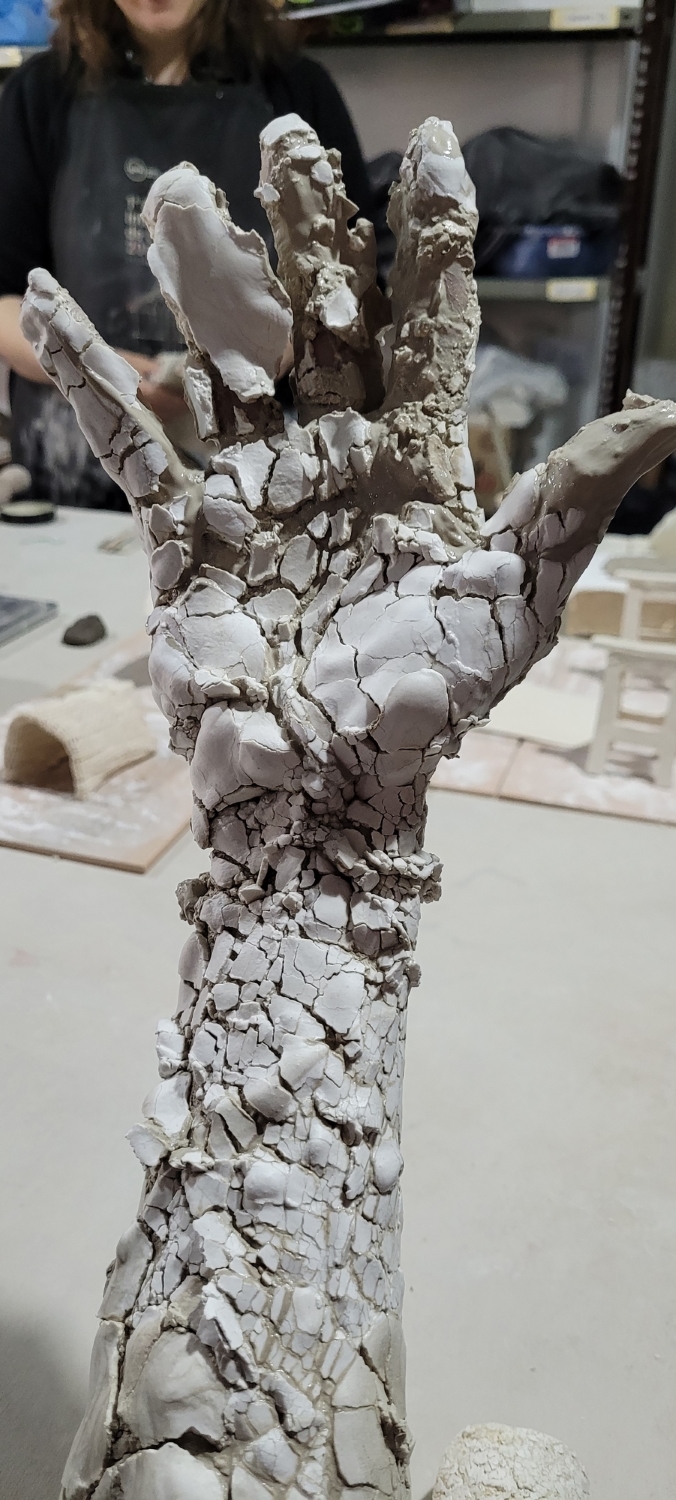 The project Golpear la Tierra is a spin-off of an enormous movement that continues to generate others. Folds and refolds of matter. The Baroque as an operative function that never stops making folds to infinity, its excess. The folds of matter, the folds of the soul are the concepts that run through us, that shape our thinking. In Golpear la Tierra, there is the artistic gesture, in what it states. There is no metaphor or symbolism. We hit the raw and dry clay to make body, mass again. We hit to unite the parts and put together something new. The violence that the Earth allows us and art allows us. What needs to be violent to continue, to transform. Hitting the Earth, to continue, to insist, to make primary gestures present again, to update them in new movements, and for other folds to surprise us.