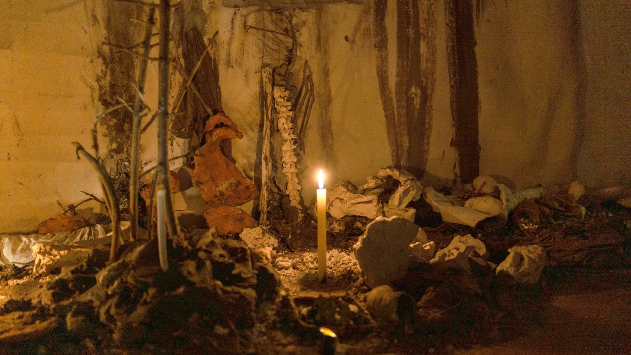 Claudia Toro and Fernanda Rodrigo. Golpear la Tierra. Performance-Installation (detail). 2024. Photos by María Urdiales Goyeneche. Video link. Video by Claudia Toro and Fernanda Rodrigo. Realization: María Urdiales Goyeneche. Texts: Arnaldo Calveyra, Claudia Toro and Fernanda Rodrigo. Voices: Anita Donndorff and Juan Diego Puentes. Sound: ifAUDIO.