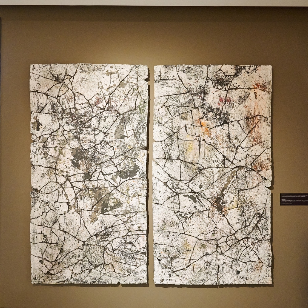 The initial discovery was caused by abandoning a small still-wet panel over a weekend because of unexpected family demands. Returning to the studio two days later, the panel had dried and cracked all on its own, and a new, limitless way forward had been born. What Pekka saw was the obvious solution for making panels of any size. All he had to do was adopt the crack as a welcome advantage, as a visually structuring element. The initial objective was to get rid of dimensional limitations, but the final result was the discovery of unsuspected freedom and the birth of a new and dynamic tension between the potentialities of clay and the newly extended pictorial space. Before Pekka’s invention, no one had ever seen ceramic panels as large or as bold, and certainly never so light.