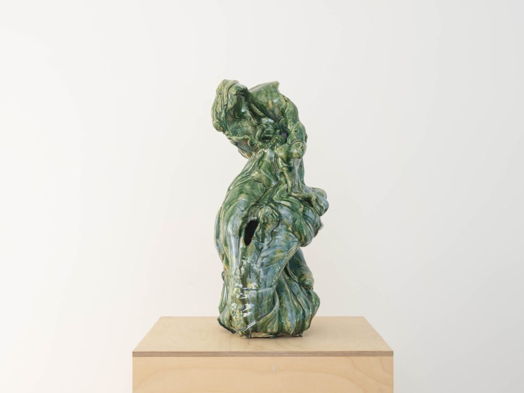 - Irene Nordli, Green Complex 3, 2025, Glazed stoneware, 24.75″ H x 11.5″ W x 12.5″ D