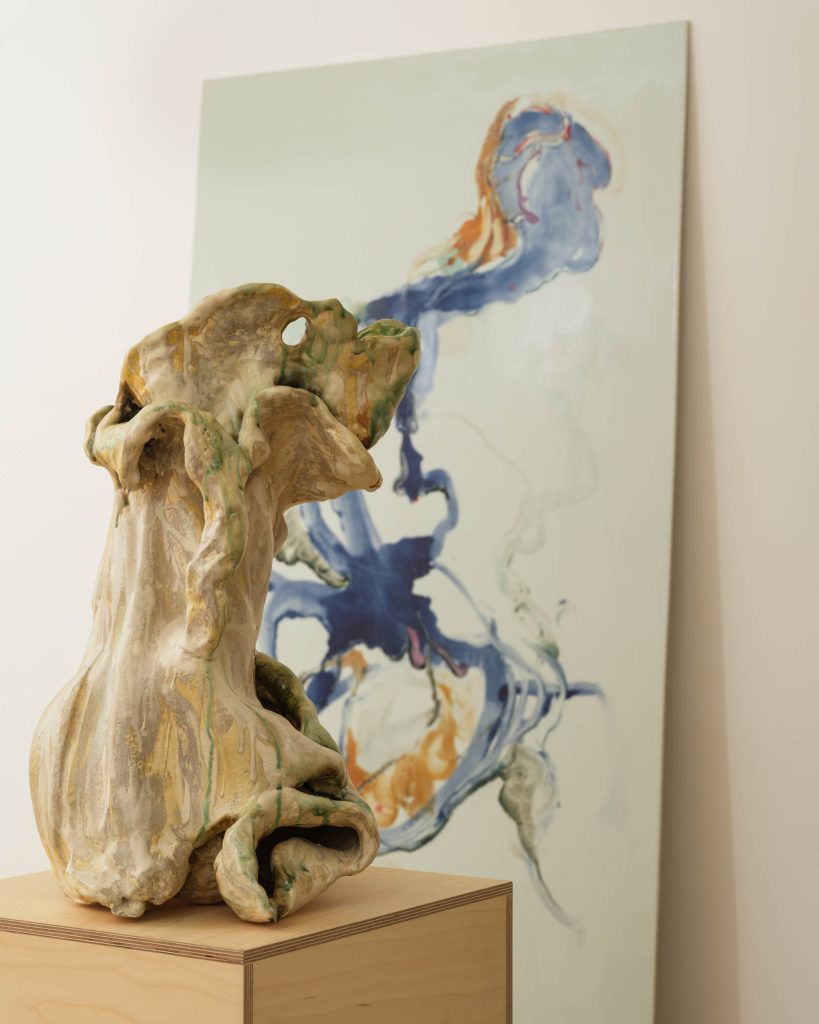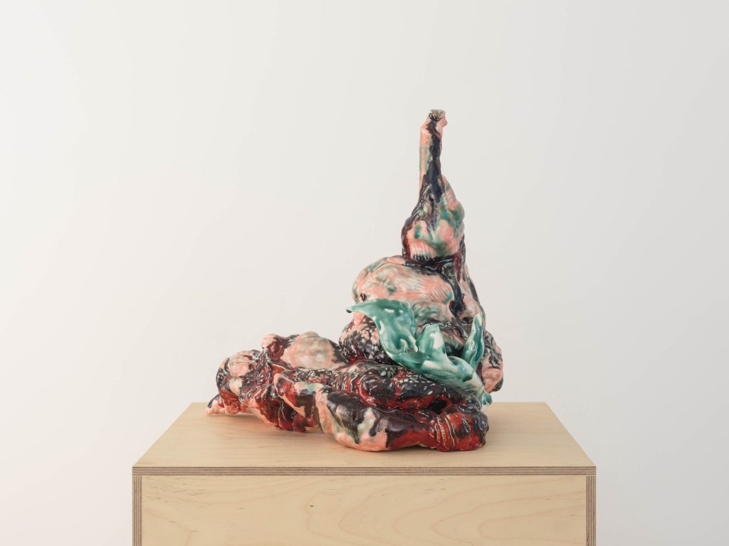 - Irene Nordli, Porcelain Fever, 2025, Glazed porcelain, 29.25″ H x 17″ W x 16.5″ D