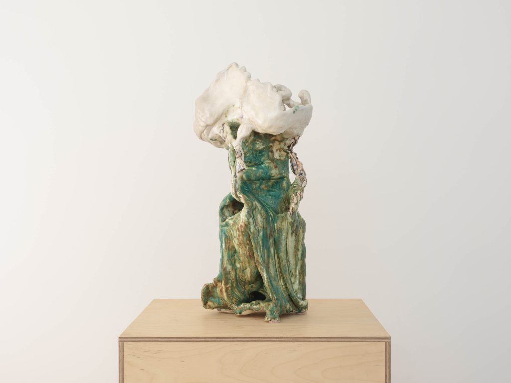 - Irene Nordli, Sorrow of the Night, 2022, Glazed porcelain, 17.75″ H x 19.25″ W x 14.5″ D
