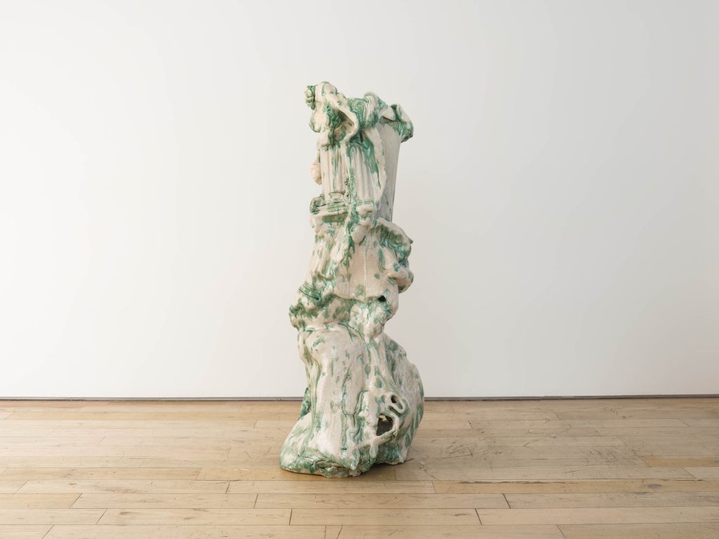 - Irene Nordli, The Collapse of the Columns, 2025, Glazed stoneware, 51.25″ H x 22″ W x 20.5″ D